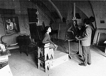 Don Francisco Cerezo en su estudio del Camarín de Jesús pintando a su modelo Rosita.